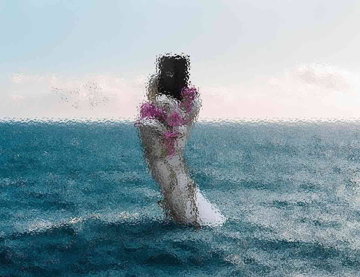Abstract art, collage with female portrait and mountains, generative ai